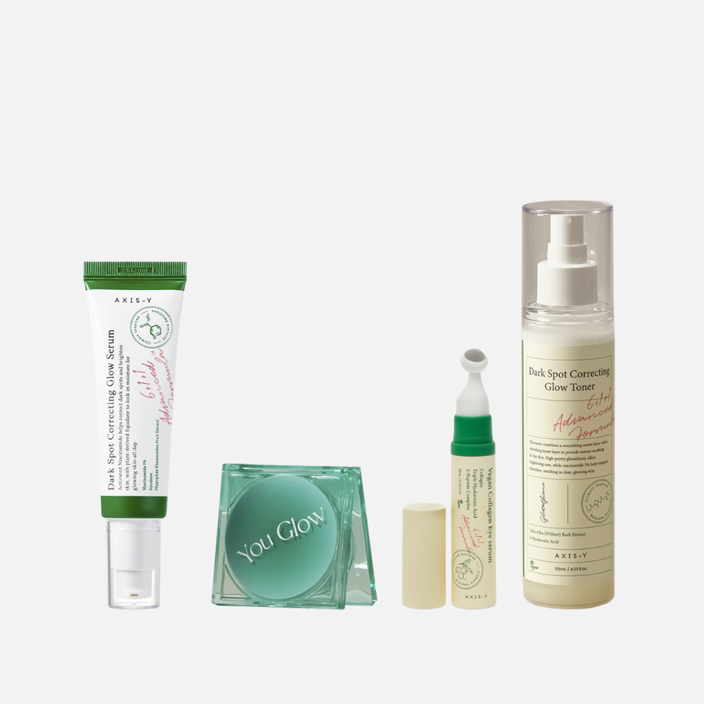 Toner] Water, Butylene Glycol, Niacinamide, Ethylhexyl Stearate, Caprylic/Capric Triglyceride, Cetyl Ethylhexanoate, Squalane, Glycerin, Sorbitan Stearate, Cetearyl Alcohol, 1,2-Hexanediol, Stearic Acid, Polysorbate, Panthenol, Ethylhexylglycerin, Sodium Ascorbyl Phosphate, Hydrogenated Olive Oil, Allantoin, Disodium EDTA, Sodium Hyaluronate, Hydroxypropyl Cyclodextrin, Brassica Oleracea Italica (Broccoli) Extract, Morus Alba Root Extract, Terminalia Ferdinandiana Fruit Extract, Phaseolus Radiatus Seed Extract, Canavalia Gladiata Seed Extract, Glycine Soja (Soybean) Seed Extract, Lens Esculenta (Lentil) Seed Extract, Ceratonia Siliqua (Carob) Seed Extract, Pueraria Lobata Root Extract, Lactobacillus Ferment Lysate, Chlorphenesin, Maltodextrin, Centella Asiatica Leaf Extract, Hippophae Rhamnoides Fruit Extract, Malpighia Glabra (Acerola) Fruit Extract, Melia Azadirachta Flower Extract, Ocimum Sanctum Leaf Extract, Melia Azadirachta Leaf Extract, Arginine, Adenosine, Phytosterols, Glutathione, Carbomer, Curcuma Longa (Turmeric) Root Extract, Corallina Officinalis Extract, Salix Alba (Willow) Bark Extract, Caprylyl Glycol, Hydroxypropyltrimonium Hyaluronate, Sodium Citrate, Ceramide NP, Polyglyceryl-10 Laurate, Citric Acid, Sodium Acetylated Hyaluronate, Hydrolyzed Hyaluronic Acid, Hyaluronic Acid, Cyanocobalamin, Sodium Hyaluronate Crosspolymer, Hydrolyzed Sodium Hyaluronate, Acetyl Octapeptide-3, Dipeptide-1, Tripeptide-2, Palmitoyl Dipeptide-7, Potassium Hyaluronate, Dipeptide-4 [Glow Serum] Water, Glycerin, Niacinamide, Sodium Hyaluronate, Propanediol, Erythritol, Butylene Glycol, Squalane, Oryza Sativa (Rice) Bran Extract, Calendula Officinalis Flower Extract, Carica Papaya (Papaya) Fruit Extract, Hippophae Rhamnoides Fruit Extract, Malpighia Emarginata(Acerola)Fruit Extract, Polyglyceryl-10 Laurate, Chlorphenesin, Arginine, Ethylhexylglycerin, Carbomer, Glutathione, 1,2-Hexanediol, Hydroxypropyl Cyclodextrin, Disodium EDTA, Hydroxyethylcellulose, Allantoin, Rosmarinus Officinalis (Rosemary) Leaf Oil [Eye Serum] Water, Methylpropanediol, Glycerin, 1,2-Hexanediol, Niacinamide, Butylene Glycol, Hydroxyethyl Acrylate/sodium Acryloyldimethyl Taurate Copolymer, C13-14 Alkane, Sodium Acrylic Acid/MA Copolymer, C15-23 Alkane, Ethylhexylglycerin, Collagen, Adenosine, Decyl Glucoside, Prunus Mume Fruit Extract, Limnanthes Alba (Meadowfoam) Seed Oil, Pyrus Malus (Apple) Fruit Extract, Carica Papaya (Papaya) Fruit Extract, Vitis Vinifera (Grape) Fruit Extract, Leuconostoc/Radish Root Ferment Filtrate, Hydrogenated Lecithin, Helianthus Annuus (Sunflower) Seed Oil, Simmondsia Chinensis (Jojoba) Seed Oil, Ulmus Davidiana Root Extract, Amaranthus Caudatus Seed Extract, Ficus Carica (Fig) Fruit Extract, Caprylyl Glycol, Centella Asiatica Extract, Polyglyceryl-10 Stearate, Ceramide NP, Sodium Hyaluronate, Tocopherol, Tripeptide-1, Palmitoyl Pentapeptide-4, Hydrolyzed Hyaluronic Acid, Hexapeptide-9, Copper Tripeptide-1, Acetyl Hexapeptide-8, Sodium Acetylated Hyaluronate